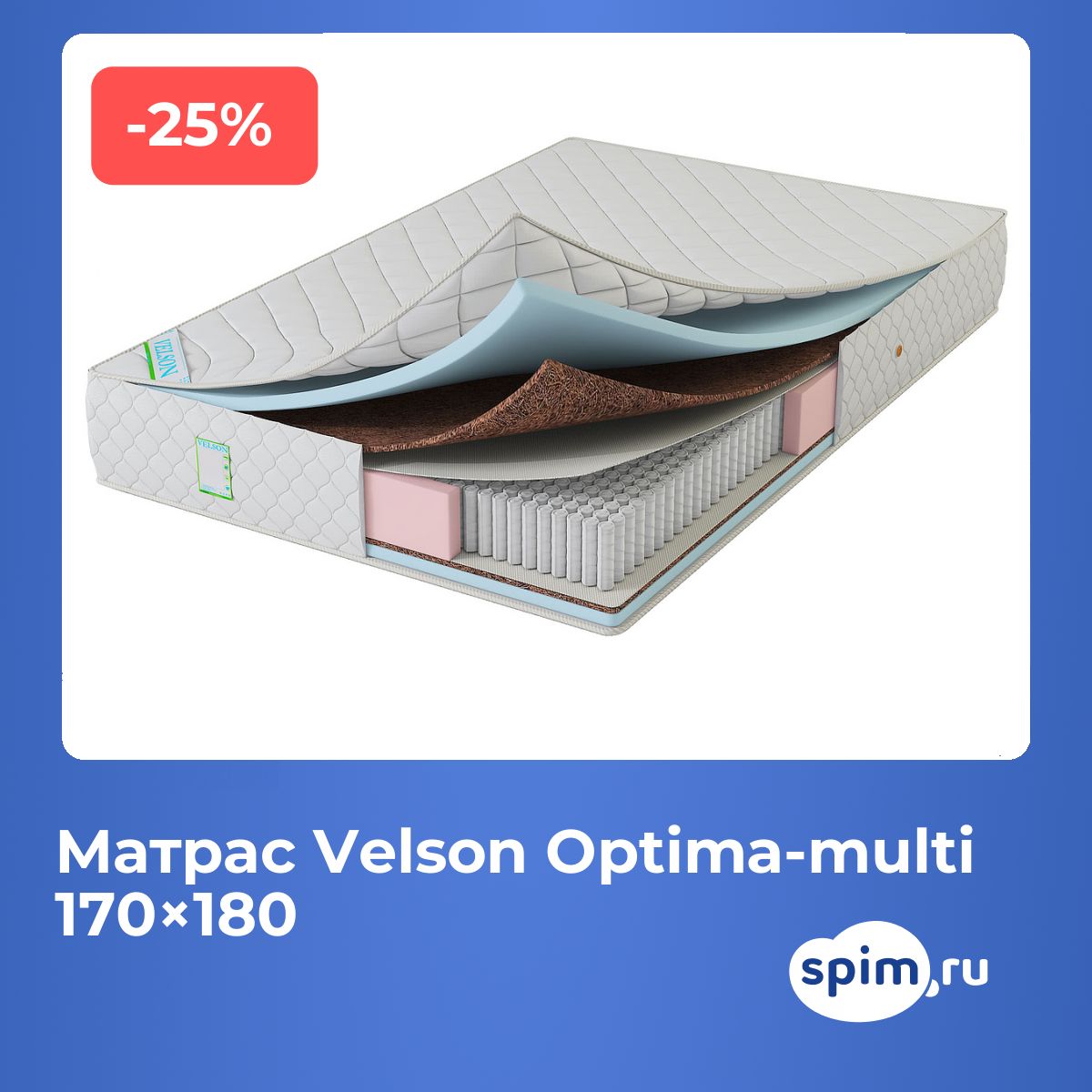 Матрас «Velson Optima-multi» — средней жесткости, которая комфортна большинству людей среднего телосложения. Это — оптимальный выбор и детям, и взрослым, и пожилым людям.